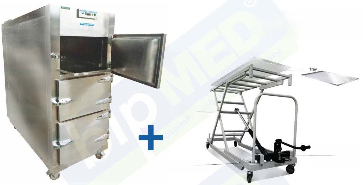 bipMED Mortuary Refrigerator 3 Person (-5 s/d 0 Derajat) with Body Trolley Lift BMO-203-3P