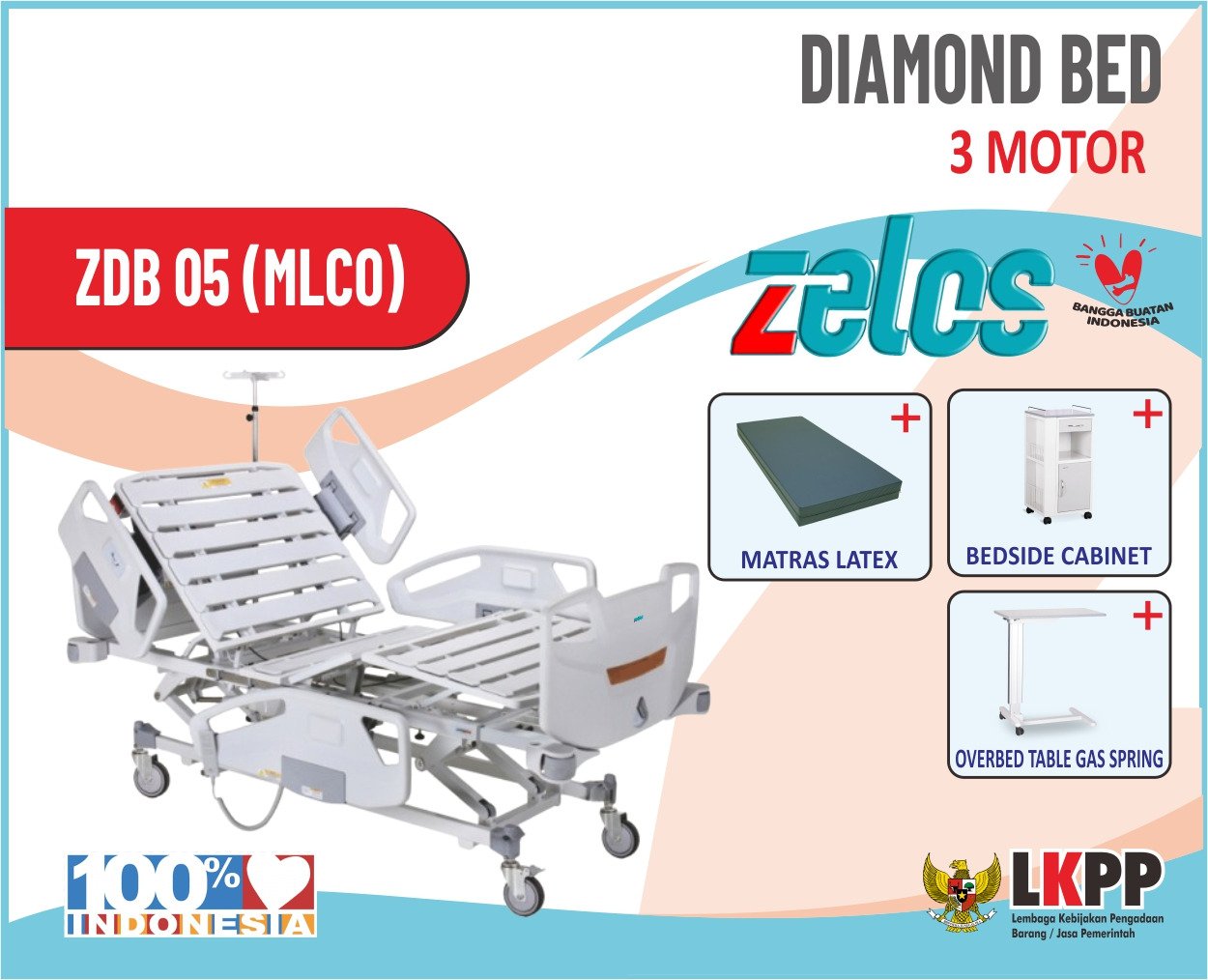 ZELOS DIAMOND BED 3 MOTOR +MATRAS LATEX+BEDSIDE CABINET+OVERBED TABLE