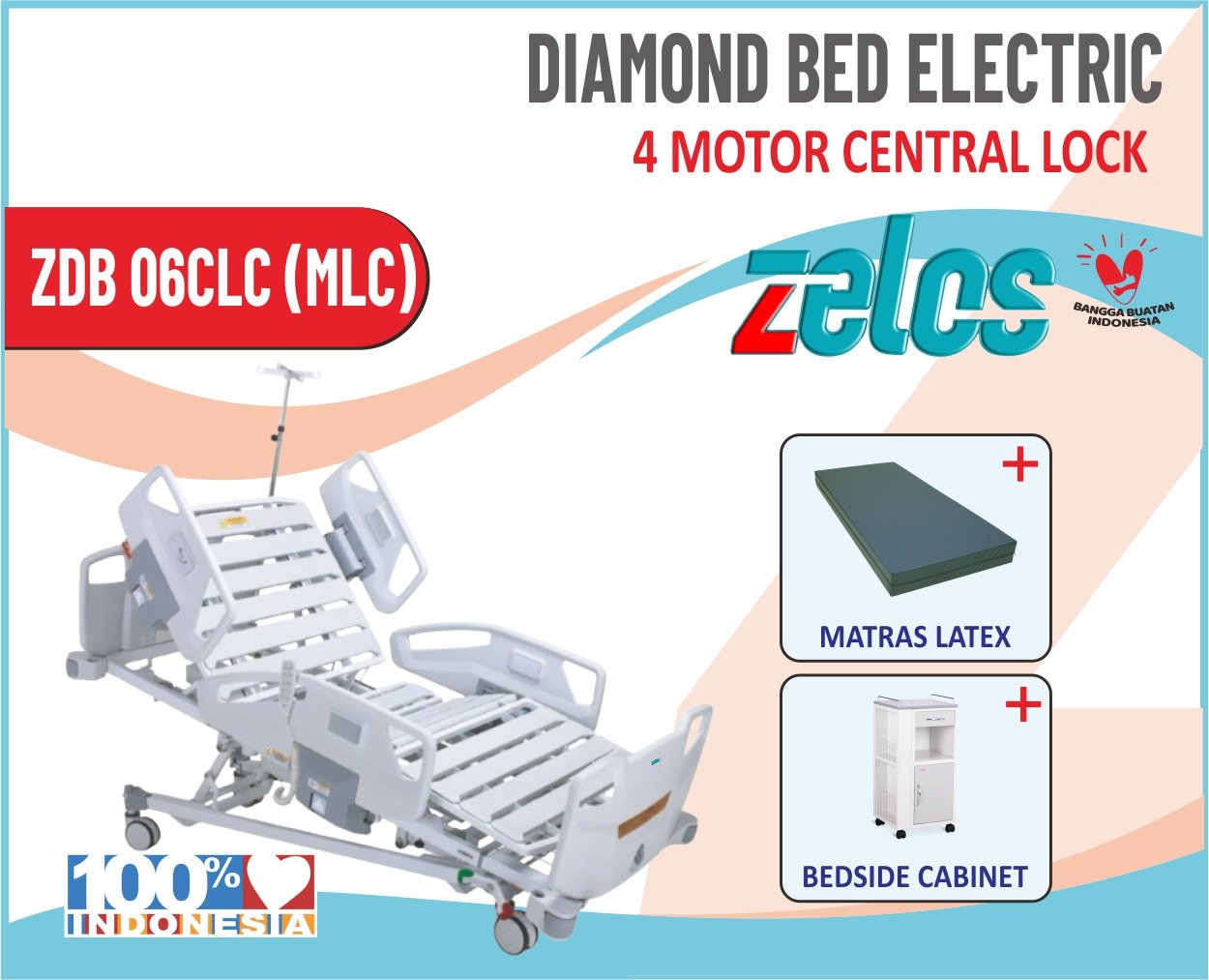 ZELOS DIAMOND BED 4 MOTOR CENTRAL LOCK+MATRAS LATEX+BEDSIDE CABINET