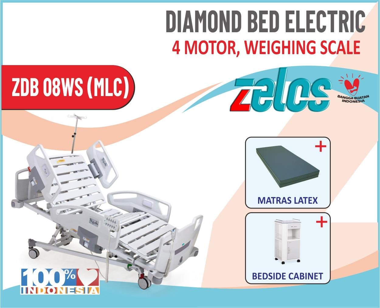 ZELOS DIAMOND BED ELECTRIC 3 MOTOR WEIGHING SCALE + MATRAS LATEX +BEDSIDE CABINET