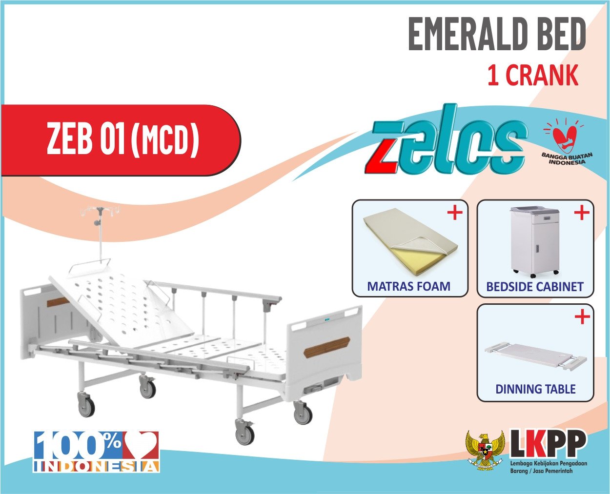 ZELOS EMERALD BED 1 CRANK +MATRAS FOAM + BEDSIDE CABINET + DINNING TABLE