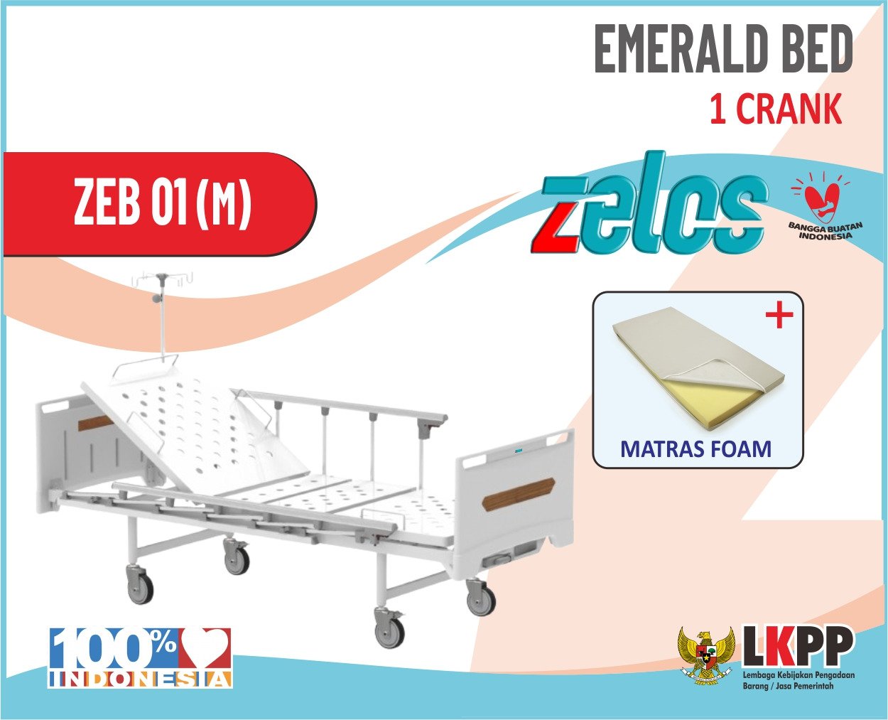 ZELOS EMERALD BED 1 CRANK +MATRAS FOAM