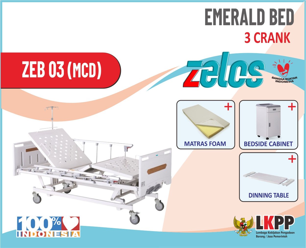 ZELOS EMERALD BED 3 CRANK + MATRAS FOAM +BEDSIDE CABINET + DINNING TABLE