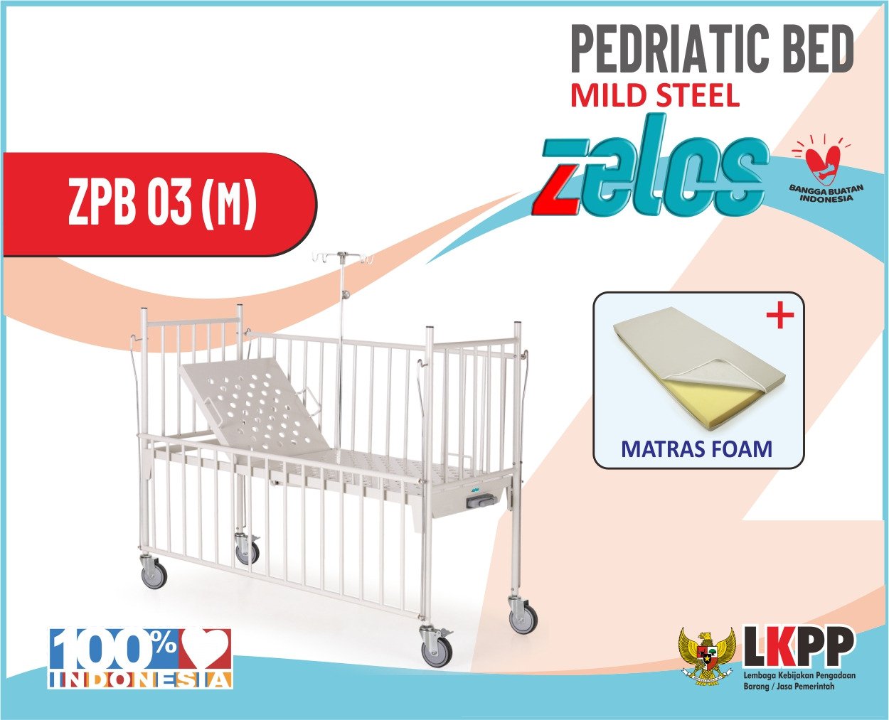 ZELOS PEDRIATIC BED MILD STEEL +MATRAS FOAM