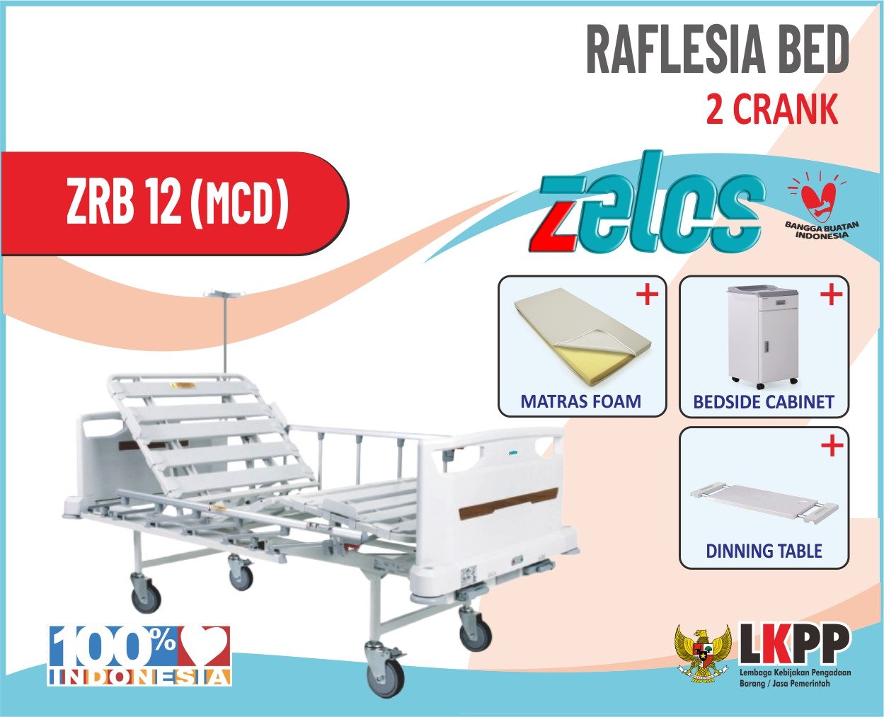 ZELOS RAFLESIA BED 2 CRANK + MATRAS FOAM + BEDSIDE CABINET + DINNING TABLE