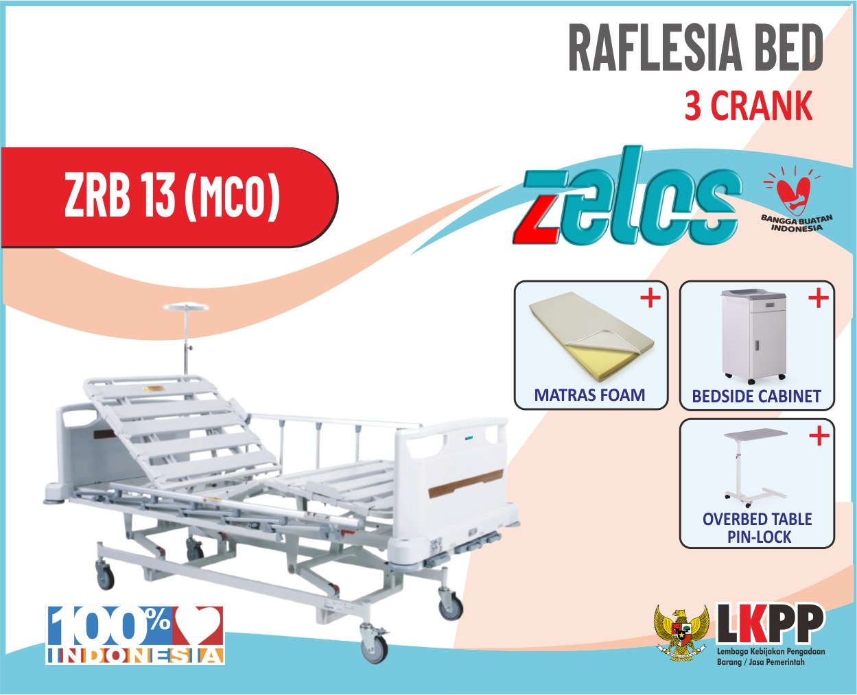 ZELOS RAFLESIA BED 3 CRANK + MATRAS FOAM + BEDSIDE CABINET + OVERBED TABLE