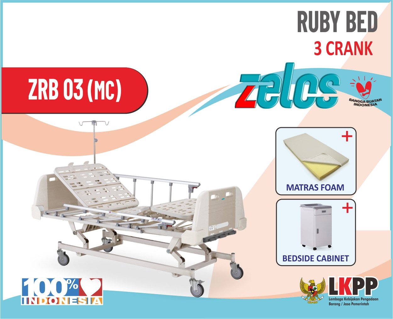 ZELOS RUBY BED 3 CRANK + MATRAS FOAM +BEDSIDE CABINET