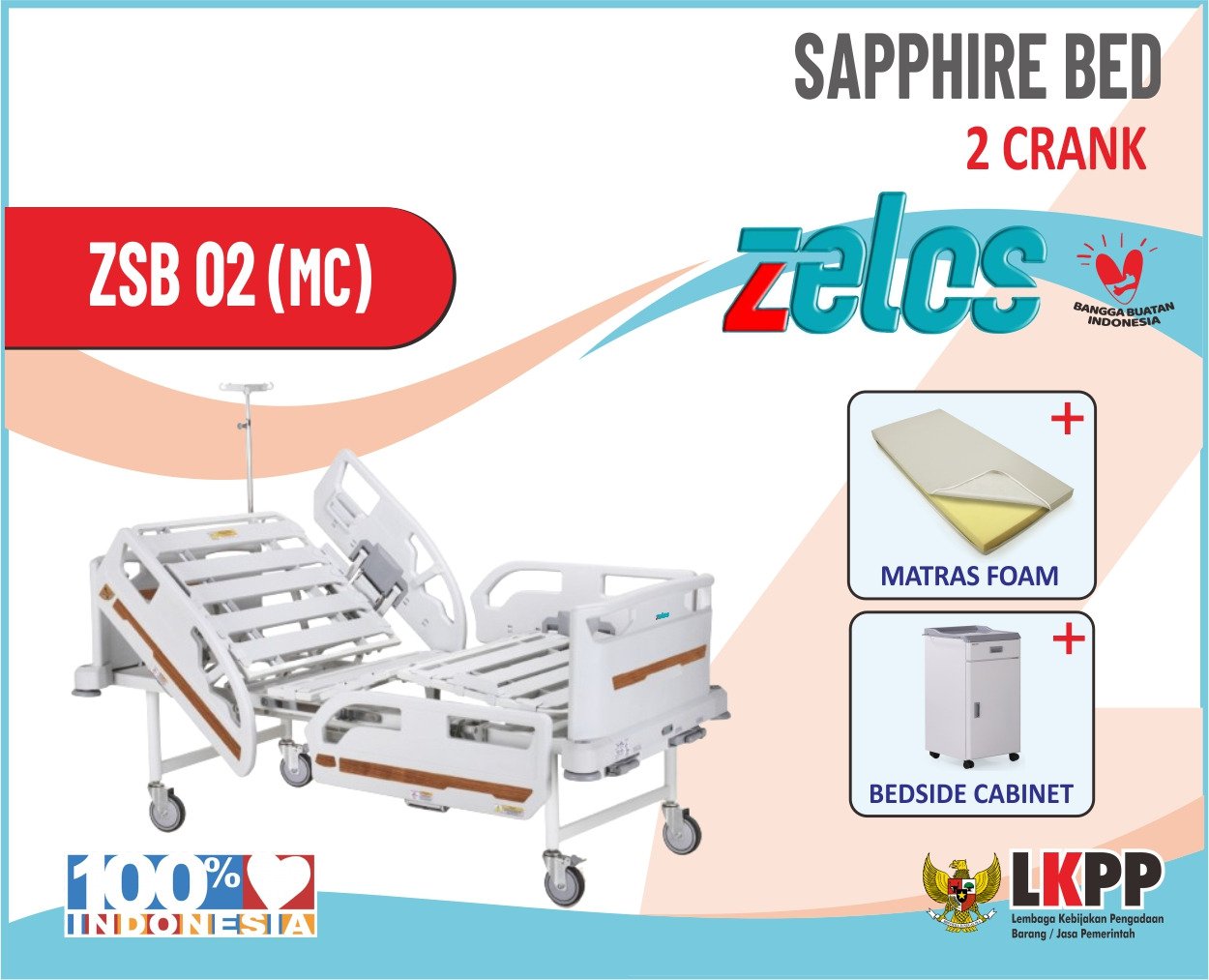 ZELOS SAPPHIRE BED 2 CRANK + MATRAS FOAM +BESDIE CABINET