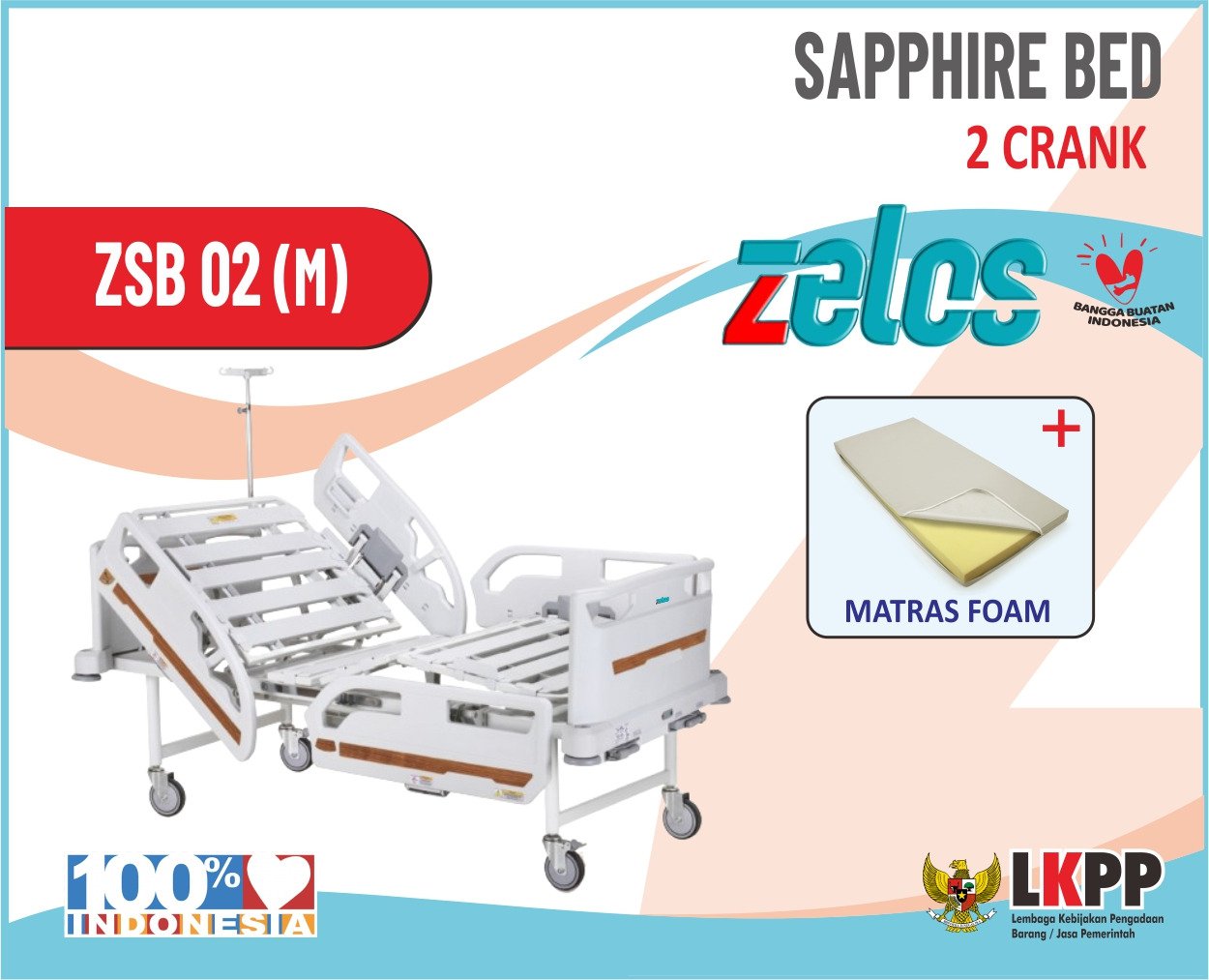 ZELOS SAPPHIRE BED 2 CRANK + MATRAS FOAM