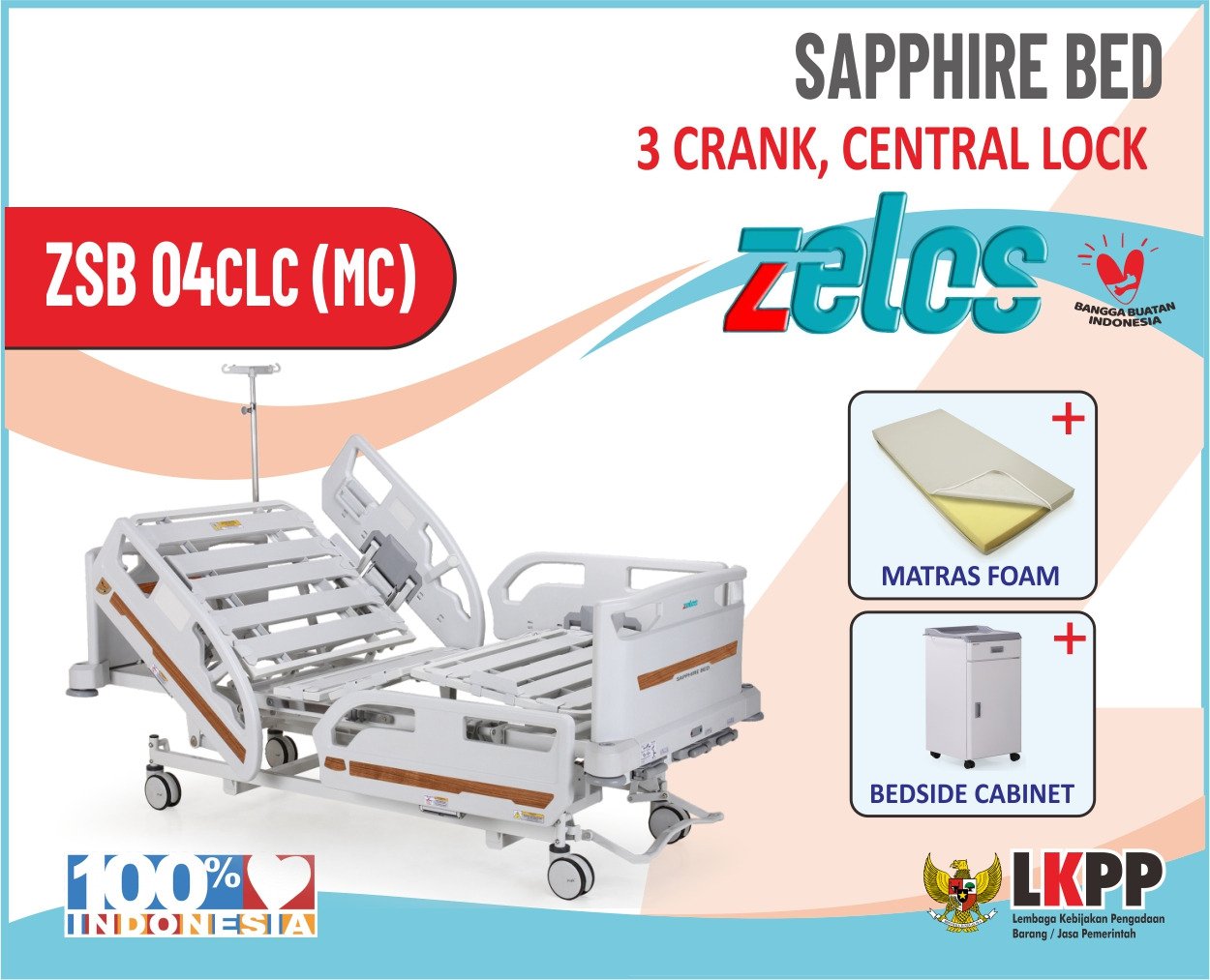 ZELOS SAPPHIRE BED 3 CRANK CLC + MATRAS FOAM + BEDSIDE CABINET