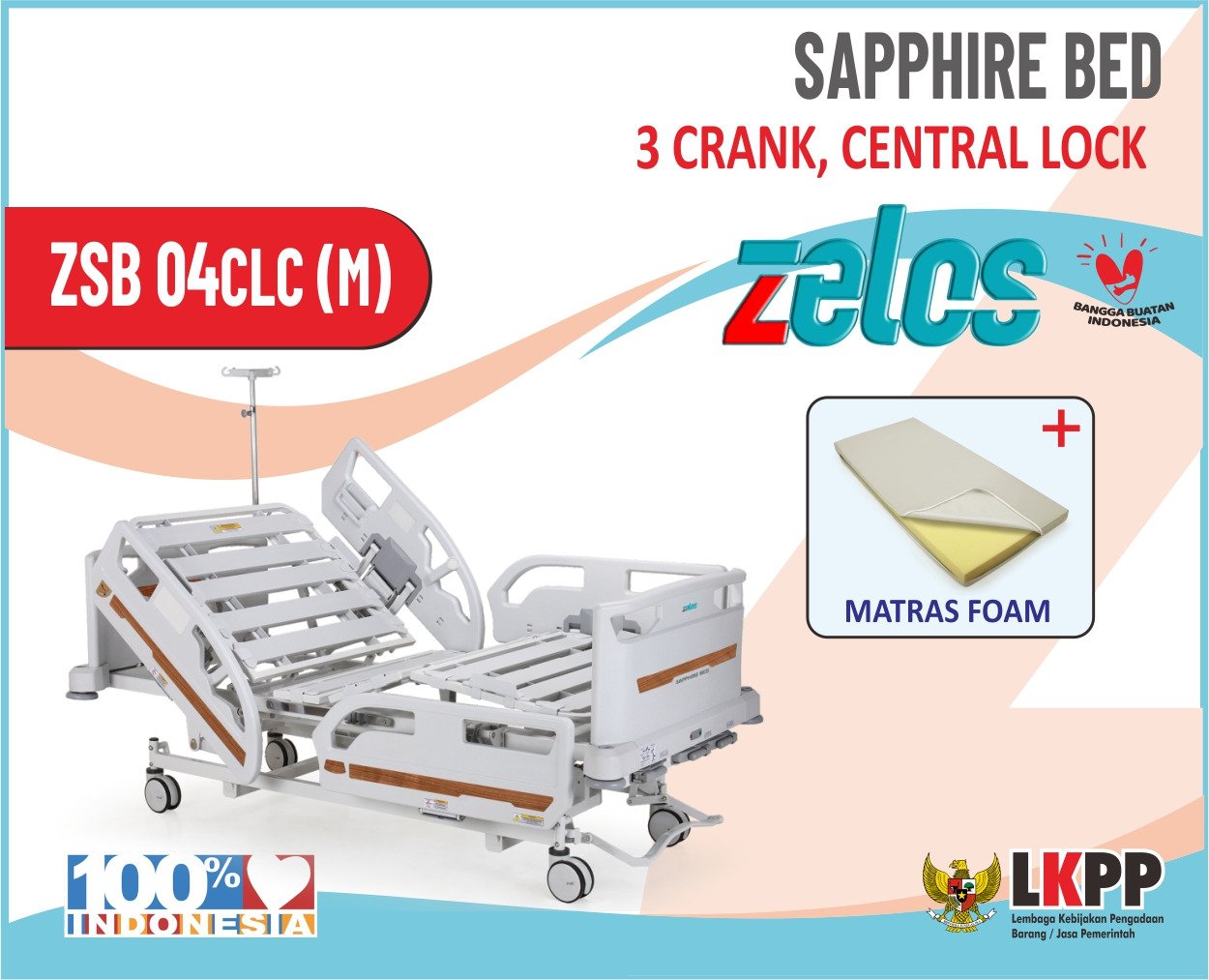 ZELOS SAPPHIRE BED 3 CRANK CLC+MATRAS FOAM