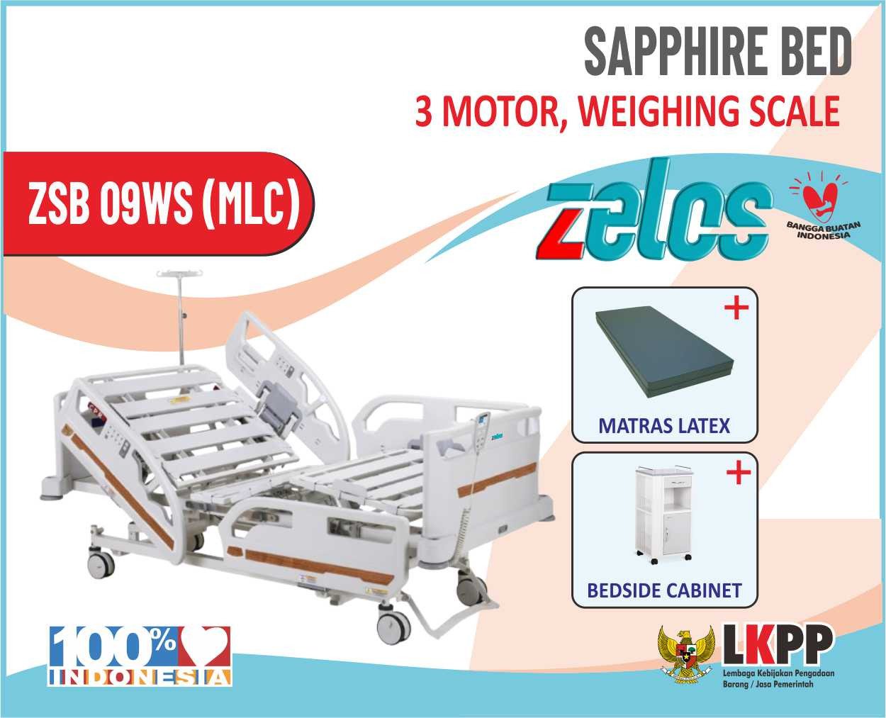 ZELOS SAPPHIRE BED 3 MOTOR WEIGHING SCALE + MATRAS LATEX + BEDSIDE CABINET