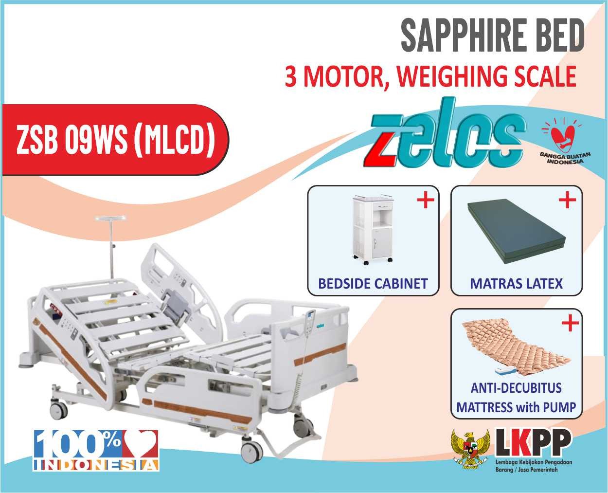 ZELOS SAPPHIRE BED 3 MOTOR WEIGHING SCALE + MATRAS LATEX + BEDSIDE CABINET+MATRAS ANTIDECUBITUS