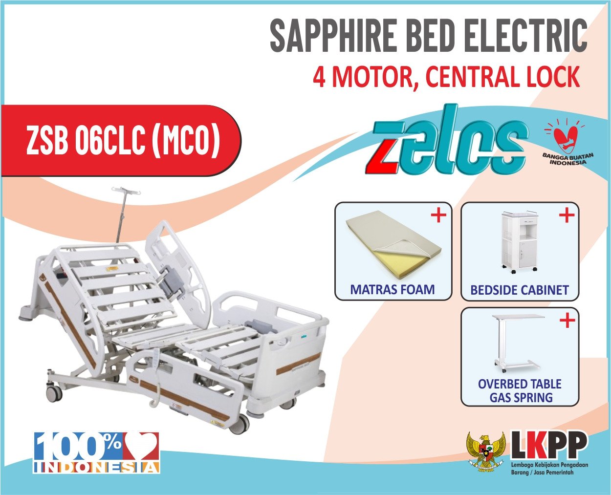 ZELOS SAPPHIRE BED 4 MOTOR CENTRAL LOCK+MATRAS FOAM+BEDSIDE CABINET+OVERBED TABLE GAS SPRING